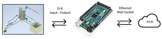 The Arduino MEGA 2560 has a clock of 16 MHz. The execution speed is very high and suitable for the management of real-time systems, such as the case study presented, considering the delays due to memory management and that the operating code is not an operating system but a single program. The libraries allow Arduino to access the internet via a SocketIO connection to send data to the Cloud. The SocketIOs will enable us to receive the plant data, in real-time, from any connected device. A web page interprets and analyzes the data and allows users to save and download the data while the plant is running. Arduino has been preferred to other types of acquirers, such as ADAM, because it can adapt its outputs autonomously, being a programmable microcontroller. On the contrary, other acquirers need at least a PC always turned on and connected to the network to read and send commands. What has been said would lead not only to a drastic increase in sensor reading times but, above all, to risks when the PID systems that control the actuators are activated because there is no direct control over them.