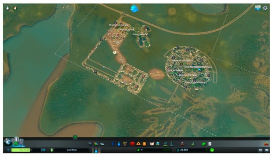 With respect to the video game used as a resource in gamification of this work, Cities: Skylines, several authors have written about its possibilities in diverse uses, such as simulation and visualization of real cities []. It has already been used for spatial planning purposes by [], who analyzed its potential to be used as an educational method in land-use management and made an evaluation of it, concluding that this game has advantages and inconveniences compared to others, as a territorial planning tool.