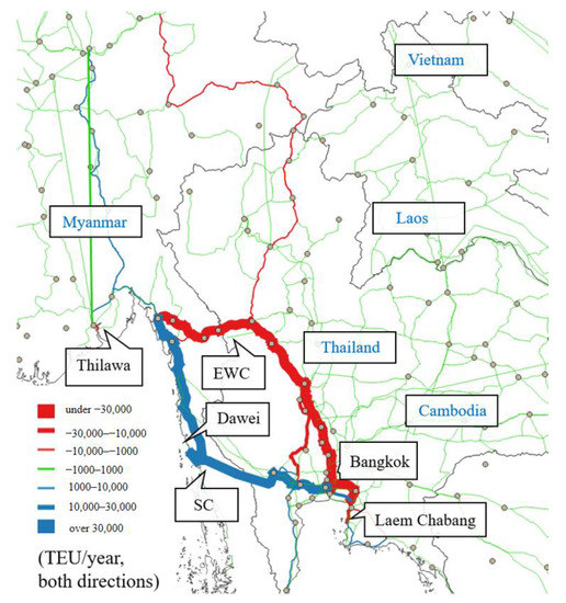 Yamaguchi, T.; Shibasaki, R.; Samizo, H.; Ushirooka, H. Impact on Myanmar’s Logistics Flow of the East–West and Southern Corridor Development of the Greater Mekong Subregion—A Global Logistics Intermodal Network Simulation. Sustainability 2021, 13, 668. https://doi.org/10.3390/su13020668
