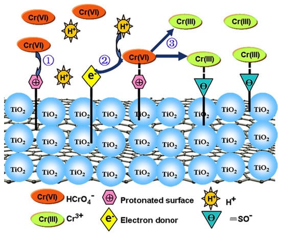 - Zhao, Y.; Zhao, D.; Chen, C.; Wang, X. Enhanced photo-reduction and removal of Cr(VI) on reduced graphene oxide decorated with TiO2 nanoparticles. J. Colloid Interface Sci. 2013, 405, 211–217. [Google Scholar] [CrossRef] [PubMed]