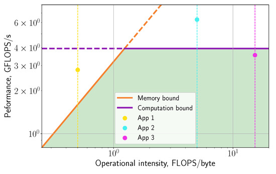 - Williams, S.; Waterman, A.; Patterson, D. Roofline: An insightful visual performance model for multicore architectures. Commun. ACM 2009, 52, 65–76. [Google Scholar] [CrossRef]