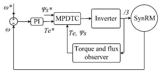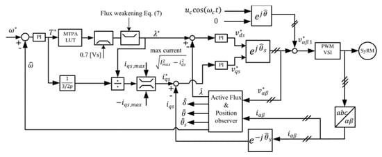 - Hofmann, H.F.; Sanders, S.R.; El-Antably, A. Stator-flux-oriented vector control of synchronous reluctance machines with maximized efficiency. IEEE Trans. Ind. Electron. 2004, 51, 1066–1072. [Google Scholar] [CrossRef]