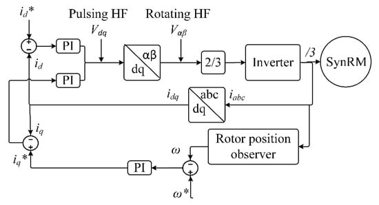 - Li, C.; Wang, G.; Zhang, G.; Xu, D.G.; Xiao, D. Saliency-based sensorless control for SynRM drives with suppression of position estimation error. IEEE Trans. Ind. Electron. 2019, 66, 5839–5849. [Google Scholar] [CrossRef]