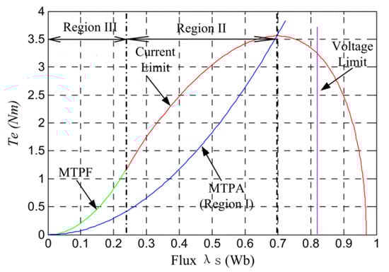 - Zanuso, G.; Peretti, L.; Sandulescu, P. Model-based flux weakening strategy for synchronous machines without additional regulators. IET Electr. Power Appl. 2018, 12, 1283–1290. [Google Scholar] [CrossRef]