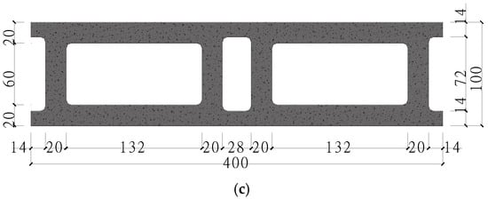 Nowadays, environmental pollution and energy waste have elicited increasing attention [,,]. As a conventional masonry material, fired clay brick has been used in China for thousands of years []. Although sintered clay blocks have played a very important role in improving our living environment, many disadvantages followed with that as the destruction of arable land as well as the excessive consumption of energy and resources have had a great adverse effect on the environment []. With the promotion of low-carbon life and the application of green buildings, the research on the hollow concrete block has become a hot topic, which could not only avoid using clay but also play a constructive role in building insulation as there are cavities inside the blocks [,]. In the past few decades, numerous research studies have been carried out to characterize the mechanical properties of concrete hollow block masonry prisms, and the feasibility of them in building engineering has been verified [,,].