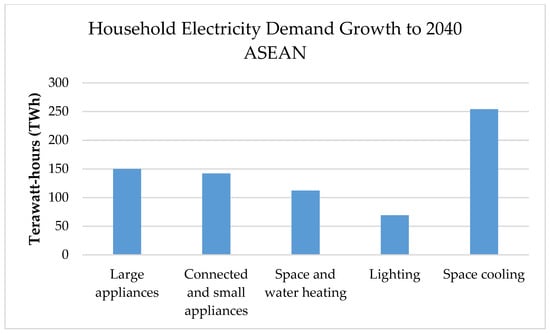 Household electricity demand growth in the ASEAN (by appliance source). Source: Adapted from IEA [].