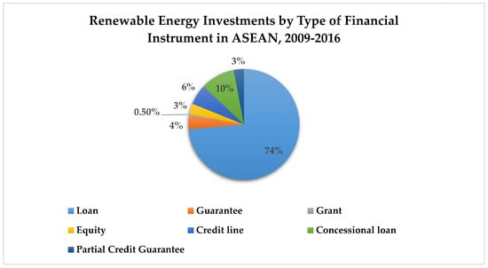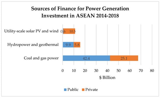 The Southeast Asian region has played a significant role under the agenda of “one community for sustainable energy” with publicly financed initiatives such as ASEAN Power Grid (APG) interconnection, Trans-ASEAN Natural Gas Pipeline (TAGP), energy efficiency, renewables, and regional level policy and planning []. All these initiatives require costly investments in capital expenditures and are risky which the private sector is not willing to bear and therefore requires appropriate public financing as evidenced. The breakthroughs in technology in the renewable sector can provide a resilient model forward on a low-carbon energy system by easing access to finance and overcoming financial barriers in the deployment of renewable energy. The stronger regional framework on green projects financing can serve as an extensive development plan and ensure a sustainable energy transition roadmap moving forward. Both regional coordination and cooperation with a strong political will from all the countries in the region will be vital for an integrated financial framework development in supporting infrastructure projects in the ASEAN.