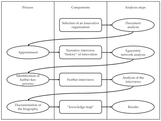 Subsequently, these data from the different surveys of egocentric network analysis, geographical analysis and the preceding desktop research are triangulated to a biography [48] (p. 226). The different interviews form the individual level of the innovation biography.