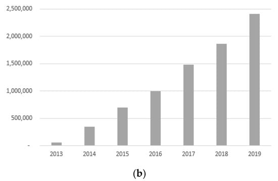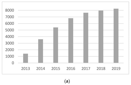 The total number of shared vehicles in Italy has significantly increased since 2013 and was about 8250 in 2019 (