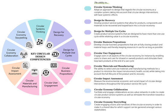 - Sumter, D.X.; de Koning, J.; Bakker, C.A.; Balkenende, R. Design competencies for a circular economy. In Proceedings of the 3rd PLATE Product Lifetimes and the Environment 2019, Berlin, Germany, 18–20 September 2019; Nissen, N.F., Jaeger-Erben, M., Eds.; TU Berlin University Press: Berlin, Germany, 2019; pp. 763–768. [Google Scholar]