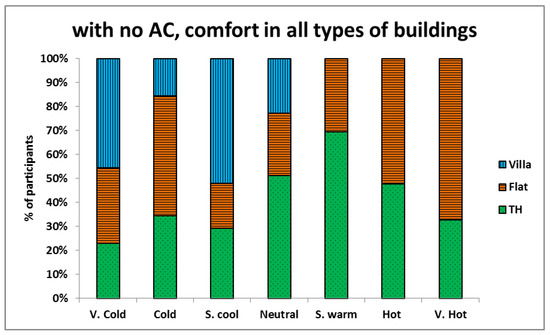 Thermal comfort sensation of occupants living in different types of buildings in a survey on about 5000 participations, where TH is a traditional house. The survey is based on winter weather conditions.