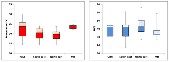 Comparison between modern building design and traditional one built 90 years ago, where MH is a modern house, and all directions are monitored in a traditional building, where OAT is outdoor air temperature (°C), ORH is outdoor relative humidity (%) [15].