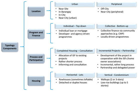 The following four typology components were decided to holistically characterize resettlement approaches in Metro Manila: (1) location, (2) program and finance, (3) strategy and participation, and (4) housing.