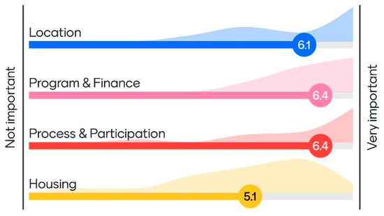 One reason for the failure of this general assumption is that many ISFs struggle to afford the payments for the more expensive in-city settlements. The monthly arising expenses that have to be paid by the beneficiaries of NHA projects start with 200 pesos in off-city projects (reaching up to almost 1400 pesos after 30 years, depending on the interest rate), whereas in-city projects start with 600 pesos (reaching up to around 5000 pesos, depending on the interest rate and the floor area). A further reason is the housing typology. The multi-story condominium housing in in-city projects can be both an opportunity and a threat. They can be an opportunity because they offer more ISFs lives within urban areas. They can be a threat because they can have manifold unwanted side effects, particularly if they are implemented in a top–down and mass construction manner. In other words, multi-story mass housing schemes in in-city locations might not be a significantly better alternative to completed mass housing off-city schemes. Galuszka argued that the formal morphology of top–down multi-story housing schemes clashes with “the spatial knowledge of informal settlers relocated to those contexts” in these projects [32]. Accordingly, ISFs might prefer horizontal housing types such as row-houses with a little lot over vertical condominium types. Furthermore, the development of ownership during the resettlement process is critical for projects. Galuszka [32] compared the participation process of two projects with people’s plan participation. He concluded that the near-city multi-story housing project in San Jose Del Monte just outside Metro Manila was developed with intensive and well-implemented participation. The compared in-city project struggled with similar processes, because due to higher land value and political interest, the project was heavily conflicted and participation processes were complicated. Thus, the near-city projects allowed for more in-depth participation and incremental changes for the housing units, and they were able to build a stronger community sense. This comparison revealed that well-implemented near- and off-city projects are, in principle, capable of fostering resilience-building and, in the long run, providing sufficient livelihood opportunities. Such projects have the potential to develop the outskirts of Metro Manila in a controlled manner and guide the decentralization of the congested urban areas. This was expressed by 16 out of 27 experts from the pre-workshop survey who perceived resettlement as an opportunity to develop the outskirts of Metro Manila, whereas only four perceived it as a risky endeavor that marginalizes the poor at the fringes. Seven experts were undecided and mentioned that it can be a suitable strategy but bears some risk.