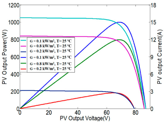 Figure 3 demonstrates different shapes of P-V and I-V curves at the standard test condition (STC), and changing temperature and solar insolation.