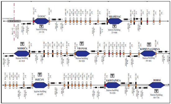 Graphical representation of the Šamac-Doboj section with the structure of all level crossings.