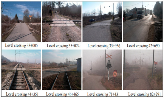 Today, there are a total of 491 level crossings on the railway network in BiH, with a total length of 1048 km, out of which 57 are actively secured and 434 are passively secured level crossings. The current state of level crossings in BiH is a problem of the greatest interest for the railway and is a generator of accidents. There are 296 level crossings in the Republic of Srpska, out of which 13 are actively secured and 283 are passively secured level crossings. Figure 3 shows the level crossings that have been considered and evaluated in this study.