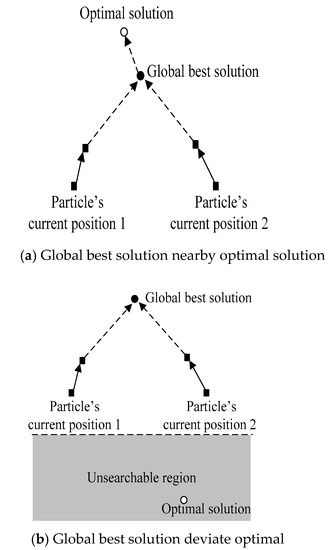Particle motion update. In this study, Equations (16) and (17) are used to describe the updating of particle motions.