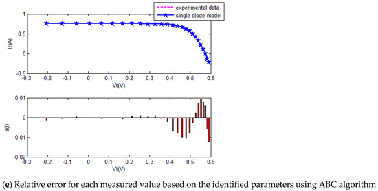 The main objective of PVC model parameter identification is to search for optimal values for the unknown parameters to minimize the difference between measured and calculated I data. Forthe SD, DD, and TD models and a PV module, the difference between the measured and estimated I data of each pair is defined by Equations (22)–(25), respectively. The overall difference is quantified using the mean squared error (MSE) in Equation (26).