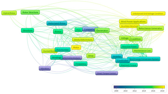 Main keywords of previous research studies about Brushless BDFRM associated with temporal relationship among them.