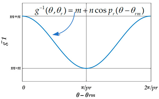where and are the fixed and variable parts of the air gap, respectively, so that . Additionally, and are the mechanical angle of the rotor and the mechanical angle around the machine with reference to phase , respectively. Therefore, the maximum and minimum air gap ( and ) are as follows: