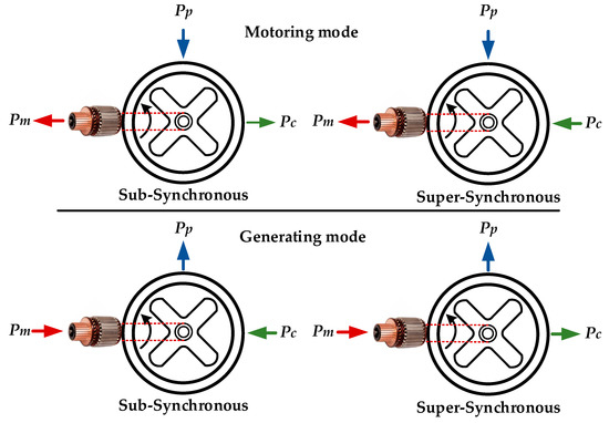 The reference active power directions for motoring and generating modes and super-synchronous and sub-synchronous modes [80].