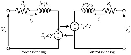 where and are current of phase for power and control windings, respectively. Additionally, is the angle difference of current for power and control windings, and and are the magnitudes of the mentioned current. It is worth mentioning that the current of phases and have and difference with the current of phase .