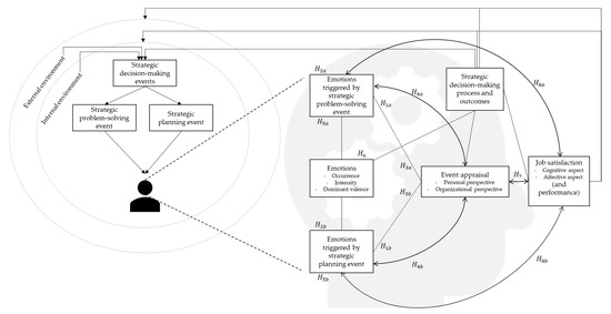 Strategic decision-making events are treated as affective events, the objects of emotions [65]. With that, we build on affective event theory, with the argument that the work events are triggers for emotions and consequently influence job satisfaction and performance. The same framework has been widely used in organizational research regarding emotions at work [1,2,3,5,6,9,13,15,16,51,53]. Building on the previous findings, it is expected that both events may be perceived as positive, neutral, or negative (given the assumptions of the affective events theory). Moreover, it is suggested that an event can be appraised differently from the personal perspective and organizational perspective [17]. We adopt that assumption and extend it to strategic decision-making events and expect that both events can be assessed or cognitively appraised from different perspectives: personal and organizational.