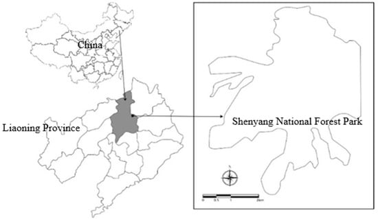 Shenyang is located in the central part of Liaoning Province and is the capital city of Liaoning Province (41°11′45″–43°3′13″ N, 122°25′9″–123°48′24″ E). Shenyang National Forest Park is in the peri-urban area of the city of Shenyang. The 933.3 ha forest park consists of hotels, restaurants, picking farms, and an international ski resort. It is covered by 577 ha of natural secondary forest, and tourists can enter the scenic area by car and bus. In 2019, almost 190,000 tourists visited the park, 72% of which came from Shenyang and surrounding cities (see Figure 1).