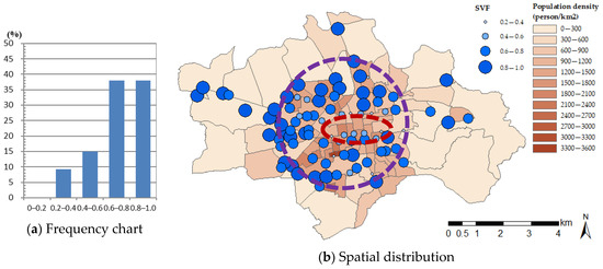 Frequency chart and spatial distribution of the canopy-scale SVF.