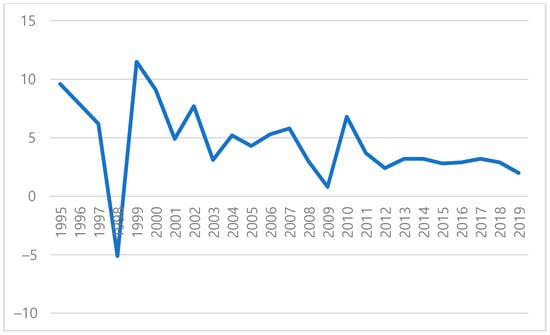 GDP growth rate of Korea. Data: Bank of Korea Economic Statistics System (source: https://ecos.bok.or.kr, downloaded 17 December 2020).