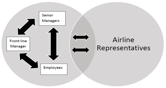 Although the radical organizational change may be driven by external events or shocks, our research focuses on front-line managers dealing with internal organizational perspectives (e.g., human resources (HR)), as these are issues that dominate their day-to-day jobs. However, because radical organizational changes cannot be entirely insulated and internalized within the organization (due largely to the outsourced nature of airport services) [24], our research also covers some aspects related to service provider–customer relationships, (e.g., the engagements with the client airlines and their other outsourced partners).
