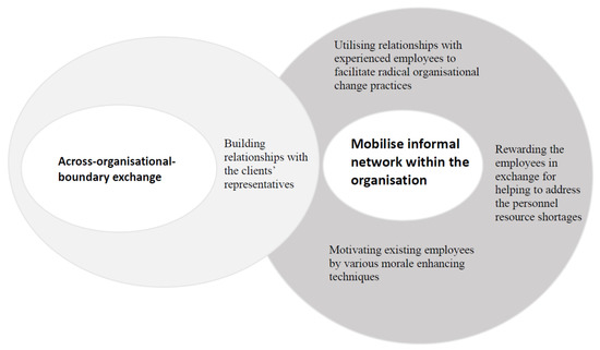 Additionally, the study ascertains four appropriate strategies that front-line managers adopt based on social exchanges to overcome the ostensibly paradoxical demands. These strategies include building relationships with the clients’ representatives, utilizing relationships with experienced employees to facilitate radical organizational change practices, rewarding the employees in exchange for helping to address the personnel resource shortages, and motivating employees to boost morale.