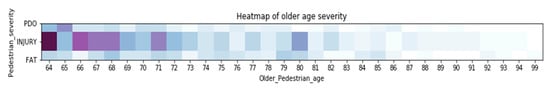 Previous research has shown that ages less than 14 are considered young, ages between 14 and 64 are considered adult, and ages greater than or equal to 65 are defined as older. This standard is widely used in the field of traffic crashes analysis. Moreover, the study of Siram showed that 65 years old is a reasonable age boundary in pedestrian traffic crash analysis [49]. In this paper, 65 years old is used as the age boundary for the older group.