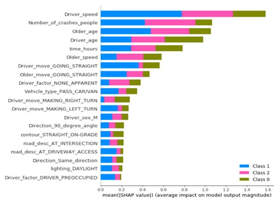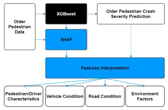 SHAP causes the study to better interpret the comprehensive results predicted by XGBoost with data visualization plots and further improves the interpretability of XGBoost, meaning the information is conveyed by the model results effectively. Besides, each feature’s impact on the severity levels of older pedestrian crashes found by interpreting the model is also conducive to further research in the future.