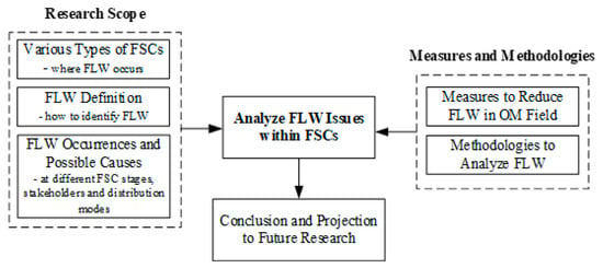 This study is a conceptual analysis based on existing literature. We develop the conceptual framework following the logic steps: literatures review, research scope identification, FLW issue discussion, measures to reduce FLW in OM, analytic methodologies, and future direction projection. Figure 1 describes the structure of this paper.