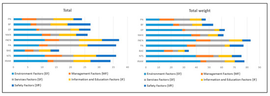 Figure 7. Total assessment of conformity factors by category, both ‘no weight attributed’ (left) and ‘weight attributed’ (right).