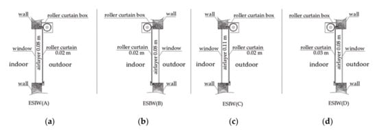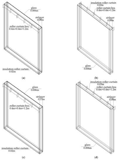 Structure of the energy-saving insulation window (ESIW). Notes: (a) ESIW(A), (b) ESIW(B), (c) ESIW(C), and (d) ESIW(D).