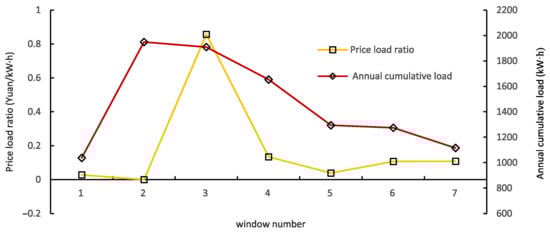 In order to comprehensively analyze the advantages of the ESIW structure relative to other thermal insulation windows, the natural room temperature, the cooling and heating load on the hottest and coldest days of the year, the total annual cooling and heating load, and the price–load ratio (PLR) for houses with seven different window types were compared and analyzed using the simulation tool. The parameters of the seven window types are shown in Table 6. For comparison purposes, the 6 mm glass window (#2) was considered the base case. Note that ESIW(A) was selected to represent all four types of ESIW windows.