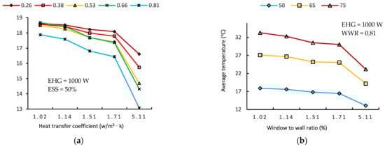 - The degree of temperature decline among different WWRs changes as a function of the HTC; the smaller the HTC, the smaller the temperature decline. Thus, when the HTC is small enough, enlarging the WWR should not create any problems. In addition, as the ESS increases, the average temperature change and HTC or WWR jointly increase. Thus, as the ESS increases, the WWR and HTC become progressively more critical.
