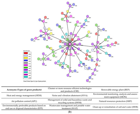 - Hamwey, R.; Pacini, H.; Assunção, L. Mapping Green Product Spaces of Nations. J. Environ. Dev. 2013, 22, 155–168. [Google Scholar] [CrossRef]