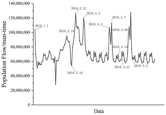 Apart from around special festivals (e.g., Spring Festival, Ching Ming Festival, Labor Day, and National Day), the daily trends of intercity population migration in China are relatively stable. Looking at Tencent’s migration big data from 1 January to 31 May 2018, we can clearly observe differences between daily and holiday population mobility (Figure 3).