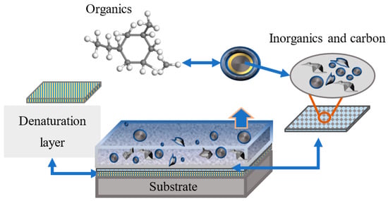 By providing a surface for attachment, the inorganics not only enhance the stability of the organics but also form a skeleton to ensure the growth of the carbonaceous deposit, as the schematic diagram shows in Figure 8. The organic and inorganic contents may differ depending on the fuel or lubricant oil and the working condition. However, the hybrid structure composed of organics and inorganics is the most distinguishing feature of all carbonaceous deposits in end-of-life engines, and it plays a key role in hampering efforts for their removal. This result emphasizes the key role played by inorganic particles in the formation and growth of carbonaceous deposits.