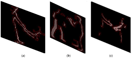 In order to extract depth silhouettes, first, threshold-based segmentation [72] is used to obtain a binary image from the original image. These segmented images are closed morphologically using binary dilation followed by a binary erosion operation [73]. Thus, binary dilation works through adding pixels to human edges while erosion works by removing boundary pixels. Binary dilation and erosion are shown through Equations (3) and (4), respectively: