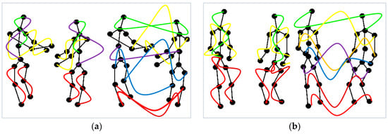 A lot of research has been done on dense trajectories [79] and localized trajectories [80]. We, however, introduced the concept of new intra-silhouette and inter-silhouette localized way-point trajectories. In both of these trajectory types a subset S, containing a different number of human joints, is given as a way-point to generate trajectories. Curve trajectories are generated at a specified orientation. First of all, two joints sets, J1 and J2, are created. Where J1 = {j1, j2, … jn} is constructed from n number, i.e., sixteen joints (head, neck, right shoulder, left shoulder, right elbow, left elbow, right hand, left hand, spine-mid, spine-base, left hip, right hip, right knee, left knee, right foot and left foot) of the first (left) person in an interaction. J2 = {j1, j2, … jm} is constructed from m number, i.e., from sixteen joints of the second (right) person in an interaction. In intra-silhouette trajectory generation, a subset S consists of all the way-points from a single joint set, i.e., either J1 or J2. On the other hand, in inter-silhouette trajectory generation, a subset S consists of way-points from both joint sets J1 and J2. Table 6 shows a detailed description of each intra-silhouette and inter-silhouette way-point trajectory cluttered around human joints.