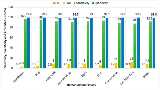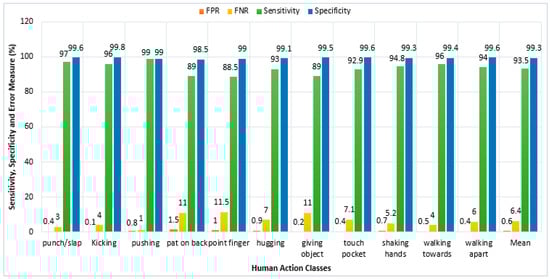 Vision-based Human–Computer Interaction (HCI) is a broad field covering many areas of computer vision, such as human action tracking, face recognition, gesture recognition, human–robot interaction and many more [1]. In our proposed methodology we focused on vision-based human motion analysis and representation for Human Action Recognition (HAR). HAR can be precisely defined as tracking the motion of each and every observable body part involved in performing human actions and identifying the activities performed by humans [2]. HAR further subdivides into atomic actions, two person interactions, multiperson interactions, human–object interactions and human–robot interactions, etc. [3,4]. However, in the proposed system, we focused on two-person interactions, i.e., human–human interaction. Extensive research has been carried out in the field of vision-based HAR systems but there remains a need for an adaptive and sustainable HAR system that is effective regardless of the environment [5,6,7,8,9,10,11]. The main aim of this research work is to develop a novel, reliable and sustainable vision-based HAR system based on our unique set of features. To this end, we propose a HAR system that is highly adaptive to changing environments and variations in available light.