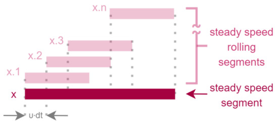 Schematic example of a steady speed segment, and the respective steady speed rolling segments. For each steady speed segment (x), various rolling segments (x.1, x.2, …, x.n) are produced.