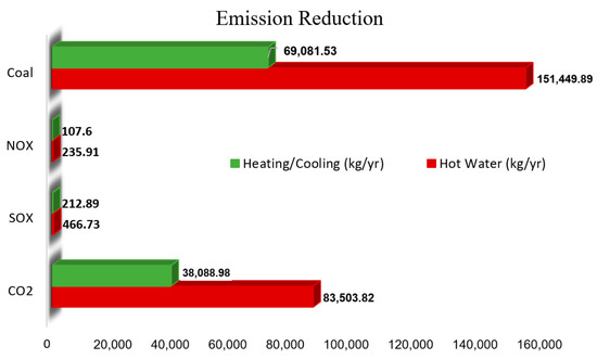 The environmental benefit of this retrofit project is enormous considering the importance of reducing carbon emission. The retrofit project will reduce Cyprus CO2 by 121,592.8 kg yearly (Figure 4). The natural gas and petroleum equivalence, respectively, for the project are; 90,806,430 m3 and 87631.38 L for hot water system retrofit, 414,199,550 m3 and 39,971.7 L for air conditioning system retrofit. The NOx and SOx saved are also highlighted in Figure 4.