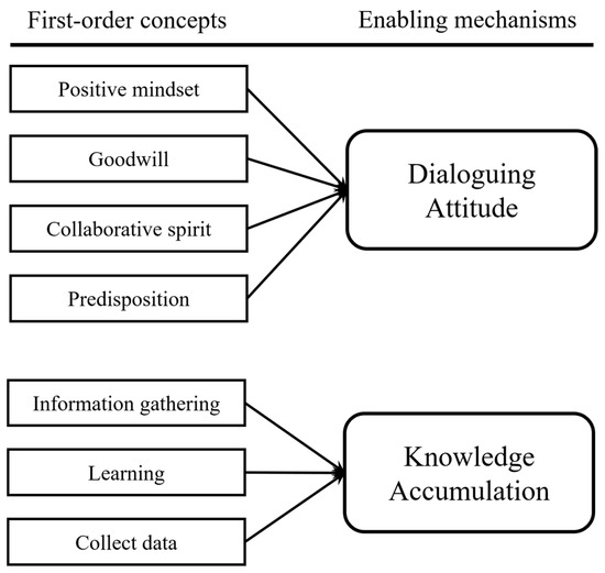 | DG ← DC | Dialogue elements (DC) constitute an opportunity to improve the relationship between both parties when firms signal that overlooked pre-dialogue considerations will be addressed (DG). | |