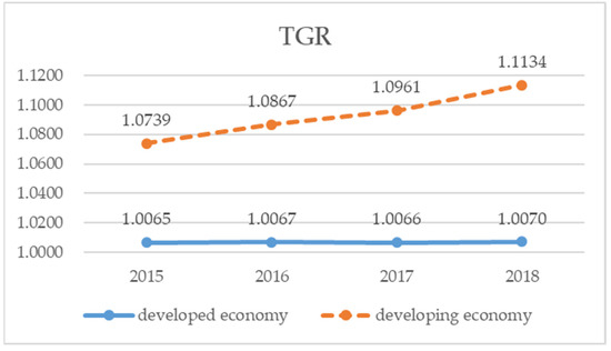 TGR of the banks in the developed and developing economies.